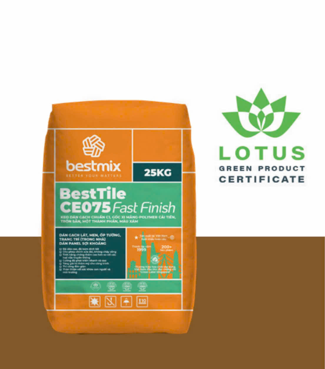 • BestTile CE075 được làm từ xi măng đặc biệt, cốt liệu khoáng chọn lọc và các phụ gia, polymer biến tính chuyên dụng