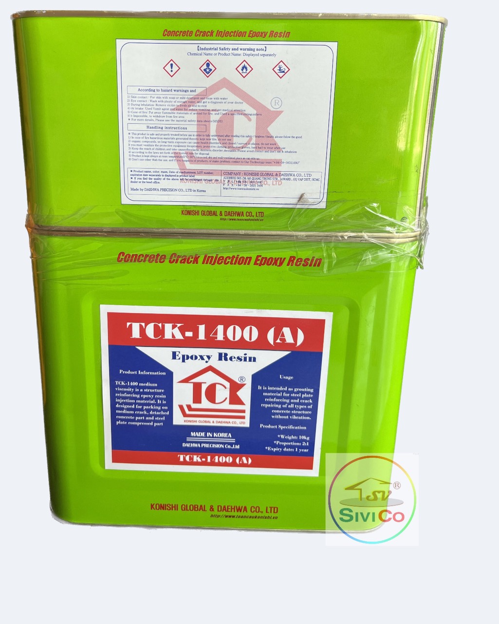 TCK-1400 là một loại vật liệu epoxy có độ nhớt thấp dùng để bơm/tiêm vào vết nứt hoặc gia cố cấu trúc bê tông, có khả năng kháng hóa chất, kháng mài mòn và va đập cao. Nó được thiết kế để liên kết những vết nứt trung bình, tách ra từ phần bê tông và thép , vật liệu chỉ cứng một lần, TCK-1400 cung cấp sức mạnh thể chất chống rỉ sét cao, và do đó phù hợp để ngăn chặn rỉ sét trên thanh thép và phục hồi cường độ bê tông